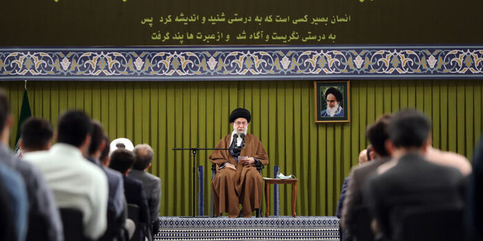 ساعت ۱۸:۱۵ بالاخره نوبت به صحبتهای رهبری میرسد. در ابتدا آقا کوتاه به برخی صحبت های دانشجویان می پردازند. مشکل را عدم گفت و شنو دانشجویان و مسئولان می دانند و معتقد اند بسیاری از سوالاتی که مطرح شد پاسخ های قانع کننده دارند. حضرت آقا مستقیما به صحبت علی بزرگخو در ارتباط با پس گرفتن صفت انقلابی اشاره می کنند و می گویند مجلس انقلابی است... در ادامه نیز صحبت های امروز نمایندگان تشکل ها را لذتبخش توصیف میکنند و سپس به شاکله اصلی صحبت هایشان پیرامون دانشگاه می رسیم.