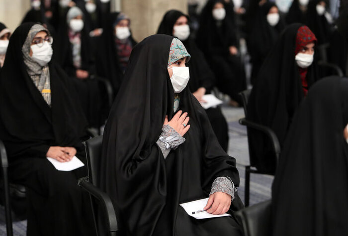 در حال ورود به حسینیه هستم که از گفتوگوی دو محافظ متوجه میشوم سخنران امروز خانم است. خبر مسرت بخشی است. مجری زهرا سادات رضوی علوی، دانشجوی ارشد جامعهشناسی دانشگاه علامه و از ادوار دفتر تحکیم وحدت است. در دیدارهای حضوری تا جایی که ذهنم کار میکند بعید میدانم مجری خانم بوده باشد. در همین فکرها چرخ میزنم که با صدای بازرس به حسینیه برمیگردم. «خانم هرچی داری با کفشات بزار داخل کمد، برو تا وضعیت سلامتت چک بشه» پس از بررسی وضعیت سلامت و تایید آن، جهت تعویض ماسک به گوشه ای هدایت میشویم. وارد حسینیه که می شوم، صندلی چیدهاند. بچه ها در حال پیدا کردن جای خوب هستند که هم به سخنرانان اشراف داشته باشند و هم به آقا. اما انگار کمی دیر رسیدهام. بالاخره به صندلی پشت سر یکی از دوستان رضایت میدهم و مینشینم.